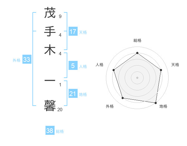 茂手木 一馨さんの総格は38画の4点!