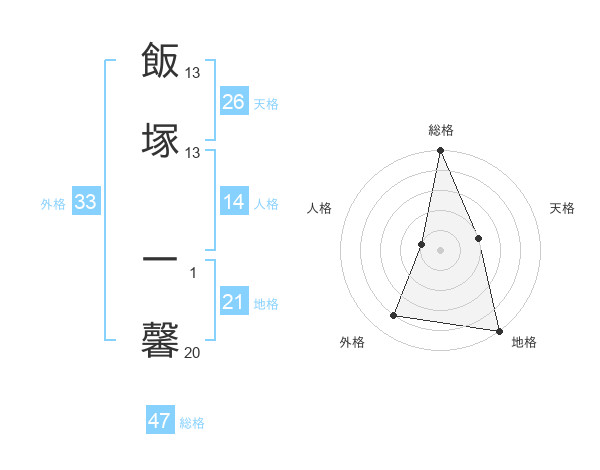 飯塚 一馨さんの総格は47画の5点!