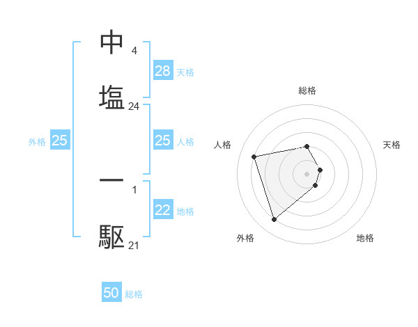 中塩 一駆さんを姓名の画数から五運を鑑定