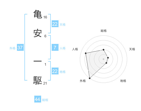亀安 一駆さんの外格は37画の5点!