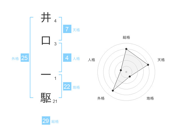 井口 一駆さんの総格は29画の4点!