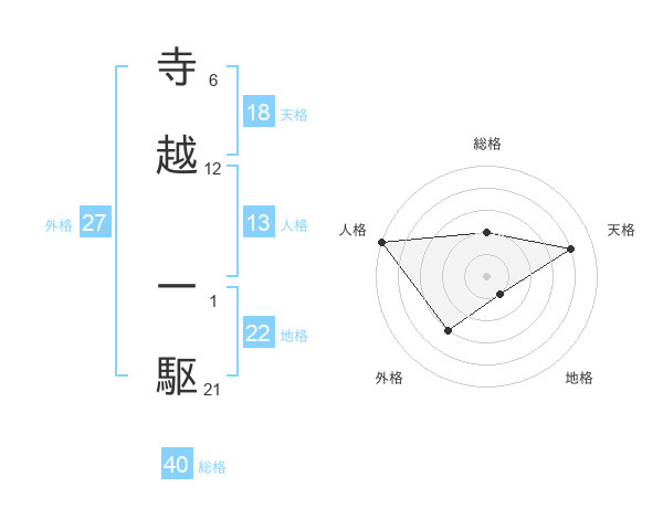 寺越 一駆さんを姓名の画数から五運を鑑定