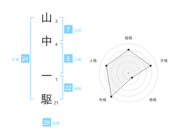 山中 一駆さんの総格は29画の4点!