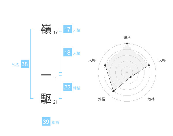 嶺 一駆さんの総格は39画の5点!