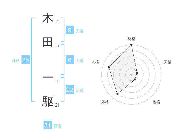 木田 一駆さんの総格は31画の5点!