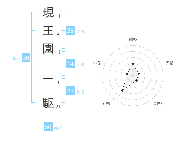 現王園 一駆さんを姓名の画数から五運を鑑定