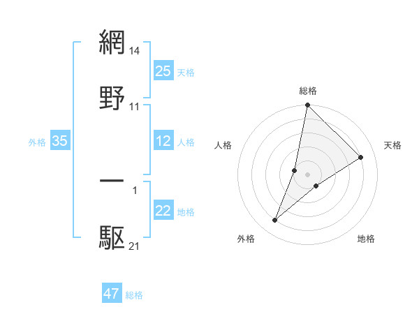 占い結果は姓名判断である以上、良い場合も悪い場合もありますが、決してお名前を誹謗中傷するものでなく、画数の自動計算によって得られたものです。また、本サイトの検索によって得られた鑑定結果で、第三者を誹謗中傷したり名誉を棄損するような行為を禁じます。