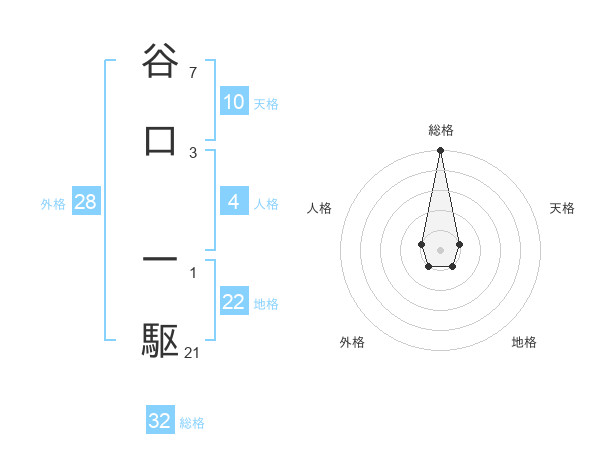 谷口 一駆さんの総格は32画の5点!