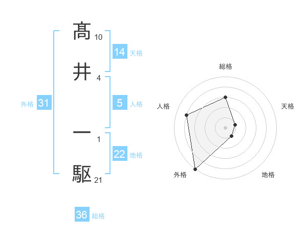 髙井 一駆さんを姓名の画数から五運を鑑定