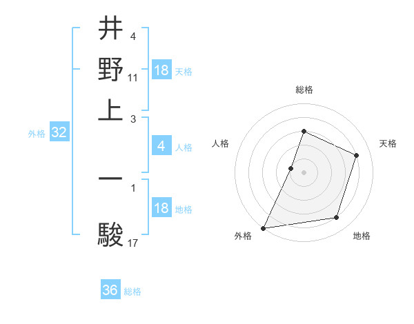 井野上 一駿さんを姓名の画数から五運を鑑定