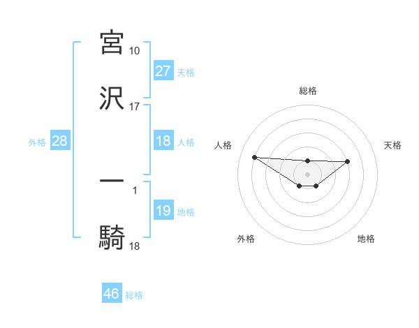 宮沢 一騎さんを姓名の画数から五運を鑑定