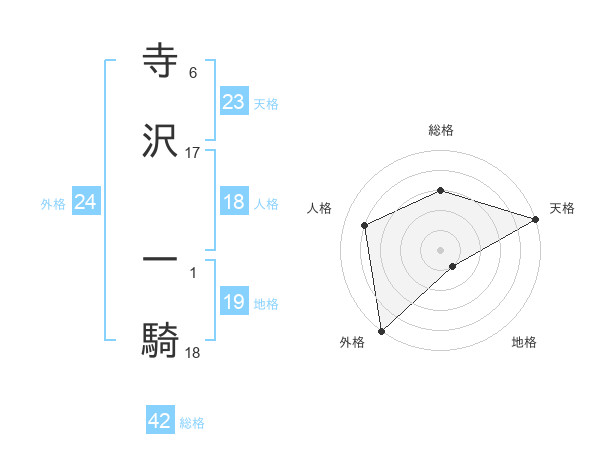 寺沢 一騎さんの天格は23画の5点!