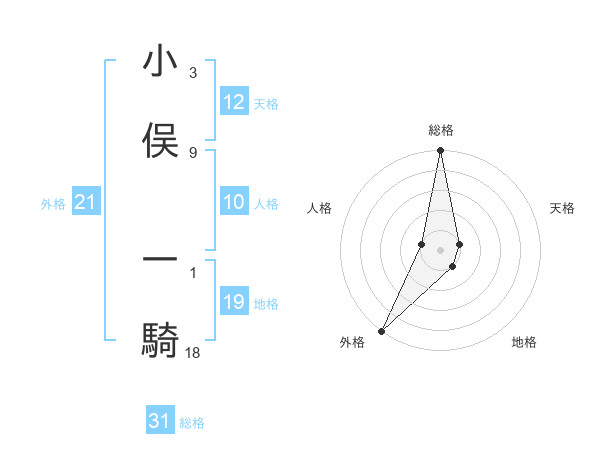 小俣 一騎さんの外格は21画の5点!