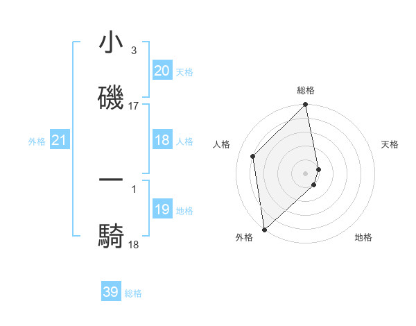 小磯 一騎さんを姓名の画数から五運を鑑定