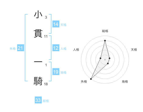 小貫 一騎さんを姓名の画数から五運を鑑定