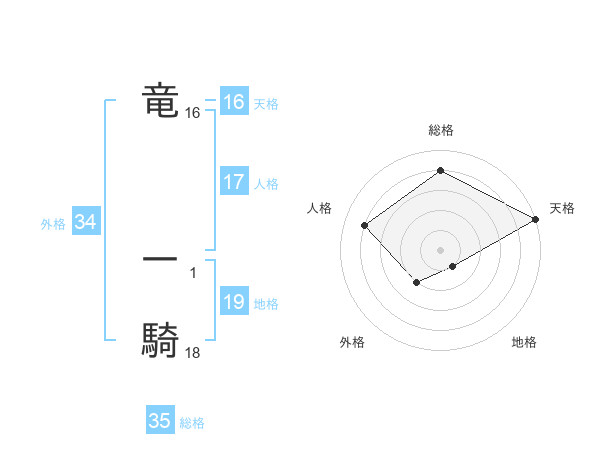 竜 一騎さんの外格は34画の2点!