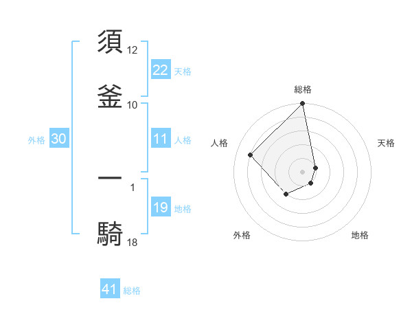 須釜 一騎さんの総格は41画の5点!