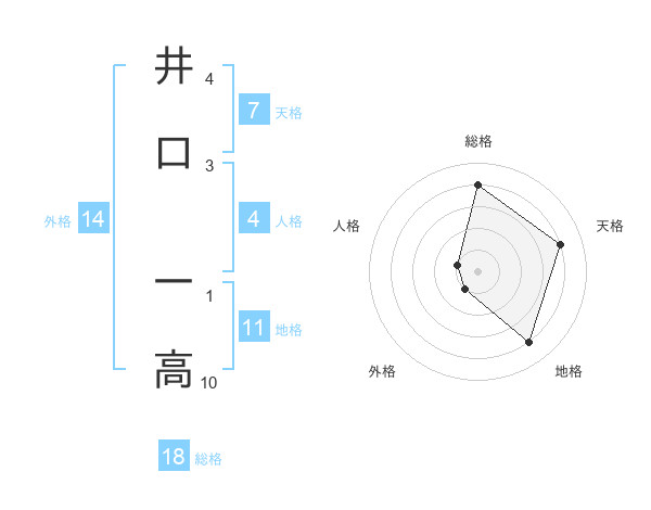 井口 一高さんの総格は18画の4点!