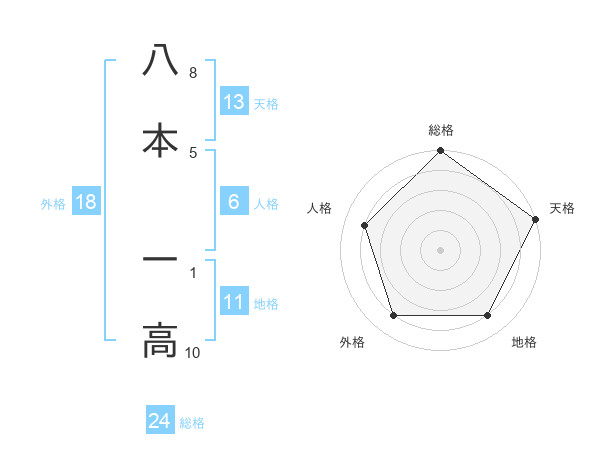 八本 一高さんの天格は13画の5点