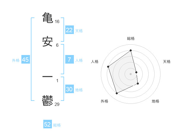 亀安 一鬱さんの総格は52画の4点!