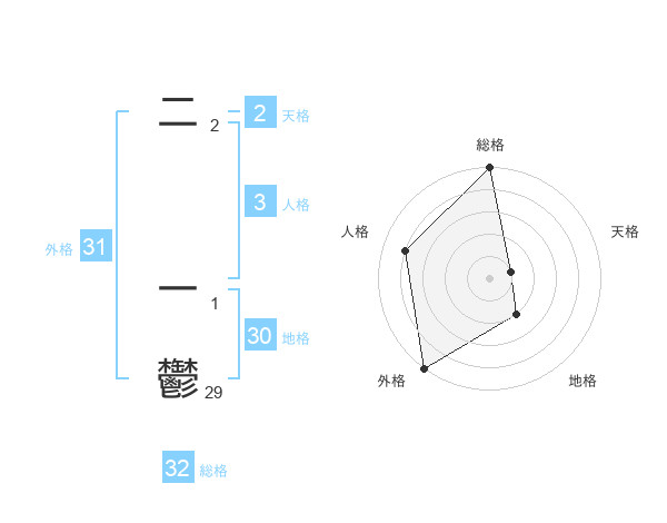 二 一鬱さんの外格は31画の5点!