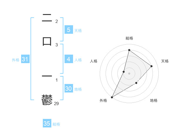 二口 一鬱さんの総格は35画の4点!