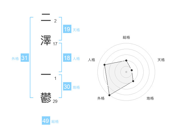 二澤 一鬱さんを姓名の画数から五運を鑑定