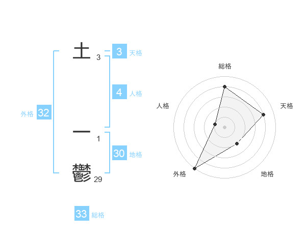 土 一鬱さんの総格は33画の4点!