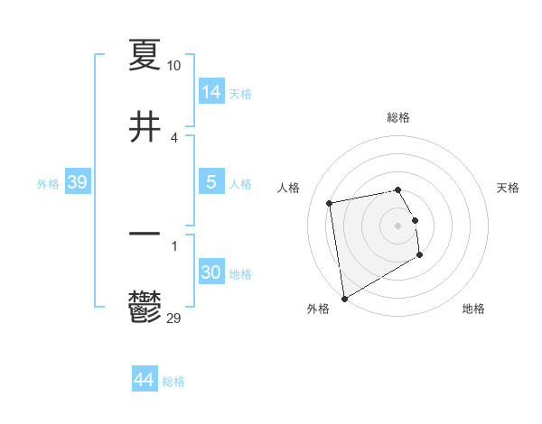 夏井 一鬱さんを姓名の画数から五運を鑑定