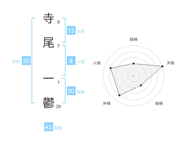 寺尾 一鬱さんの天格は13画の5点!