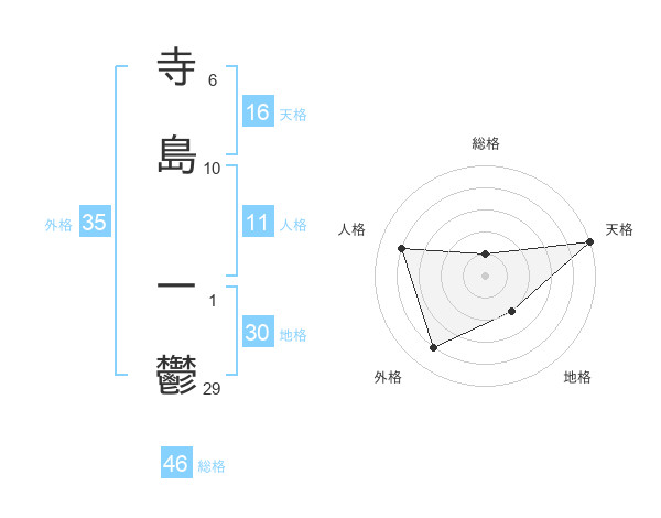 寺島 一鬱さんの総格は46画の1点!