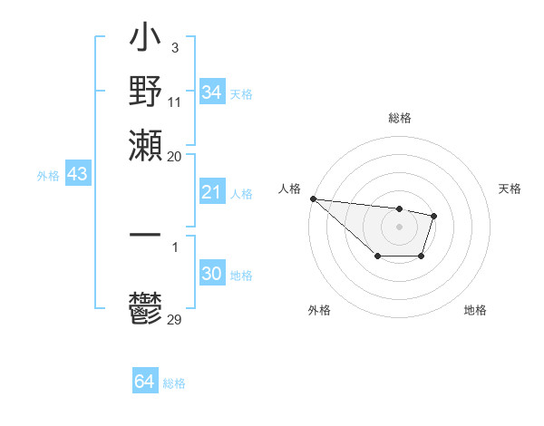 小野瀬 一鬱さんの総格は64画の1点!