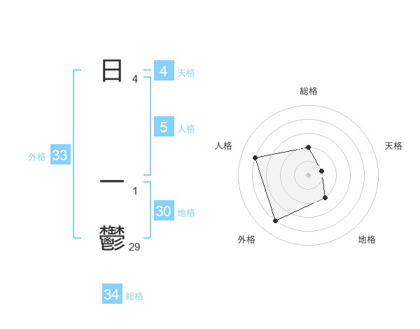 日 一鬱さんの外格は33画の4点!