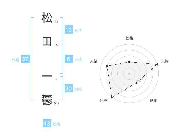 松田 一鬱さんを姓名の画数から五運を鑑定