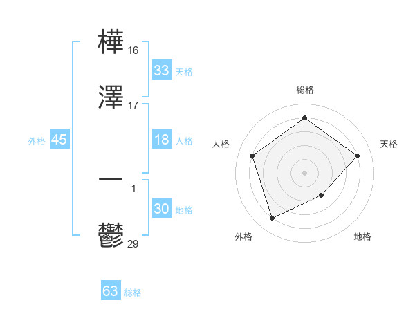 樺澤 一鬱さんの総格は63画の4点!