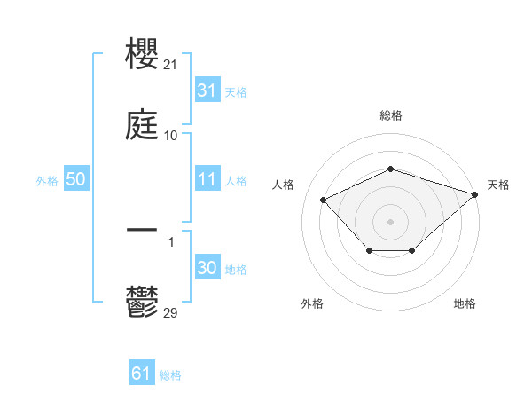 櫻庭 一鬱さんを姓名の画数から五運を鑑定