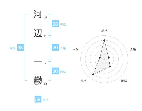 河辺 一鬱さんの外格は38画の4点!