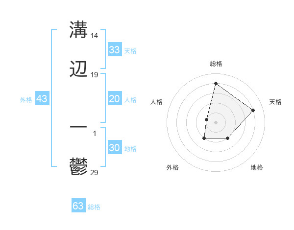 溝辺 一鬱さんの総格は63画の4点!