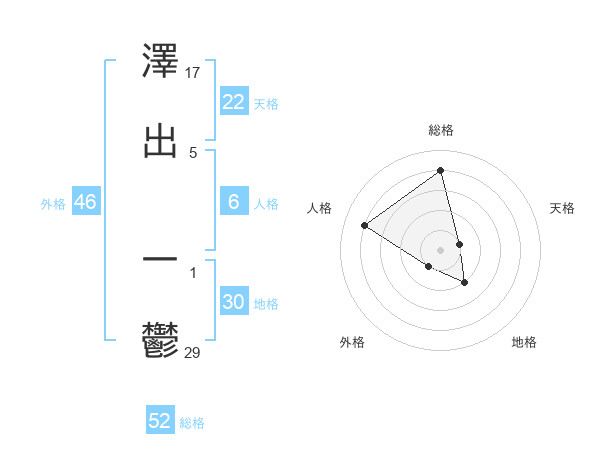 澤出 一鬱さんの外格は46画の1点!