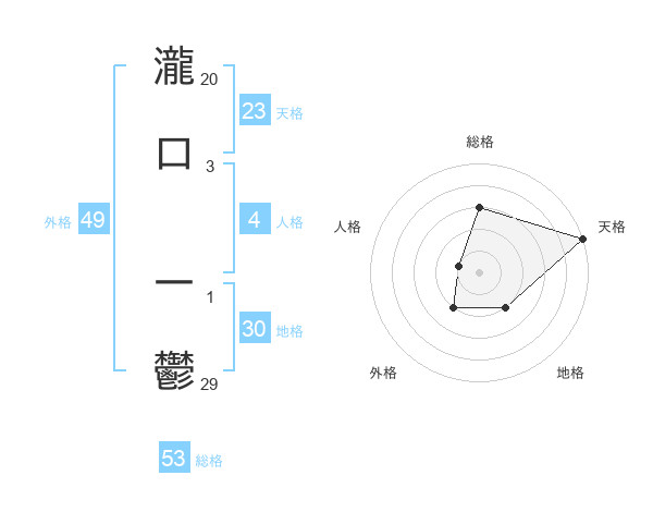 瀧口 一鬱さんを姓名の画数から五運を鑑定