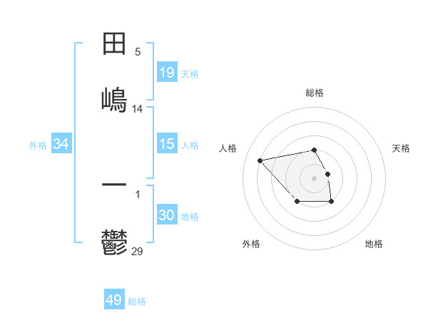 田嶋 一鬱さんの総格は49画の2点!
