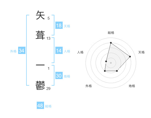 矢葺 一鬱さんの総格は48画の4点!