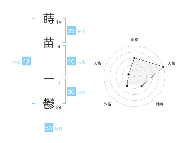 蒔苗 一鬱さんを姓名の画数から五運を鑑定