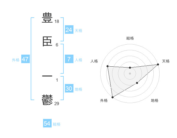 豊臣 一鬱さんを姓名の画数から五運を鑑定