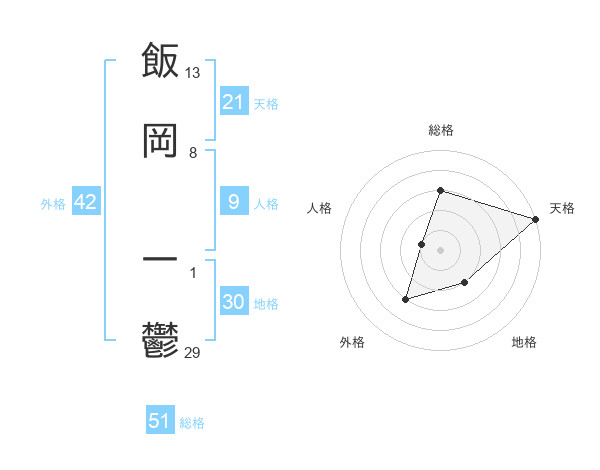 飯岡 一鬱さんを姓名の画数から五運を鑑定