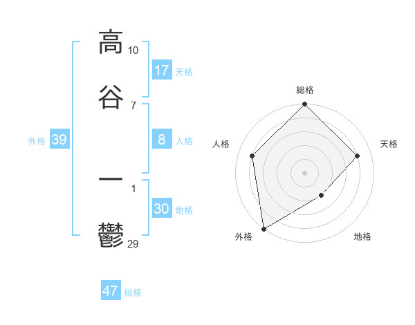 高谷 一鬱さんを姓名の画数から五運を鑑定