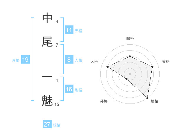 中尾 一魅さんの外格は19画の1点!