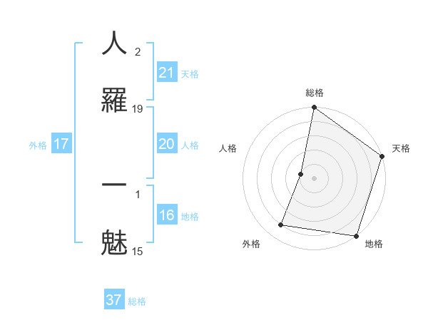 人羅 一魅さんの総格は37画の5点!