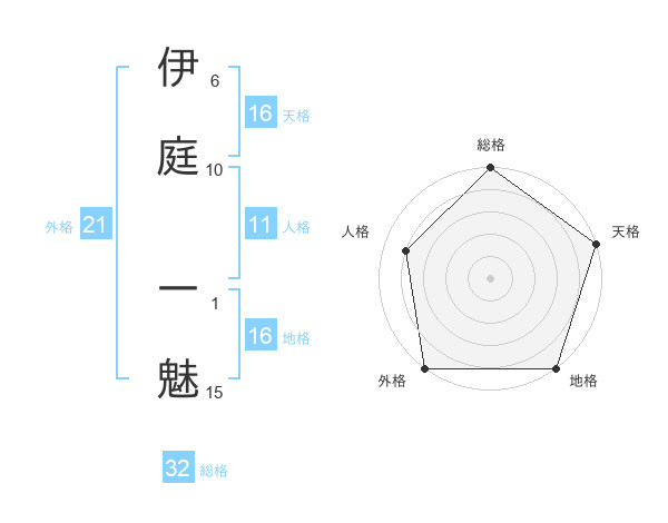 伊庭 一魅さんを姓名の画数から五運を鑑定