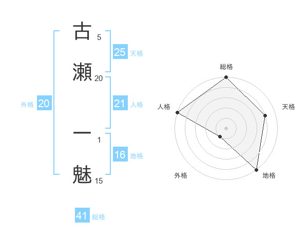 古瀬 一魅さんの天格は25画の4点!